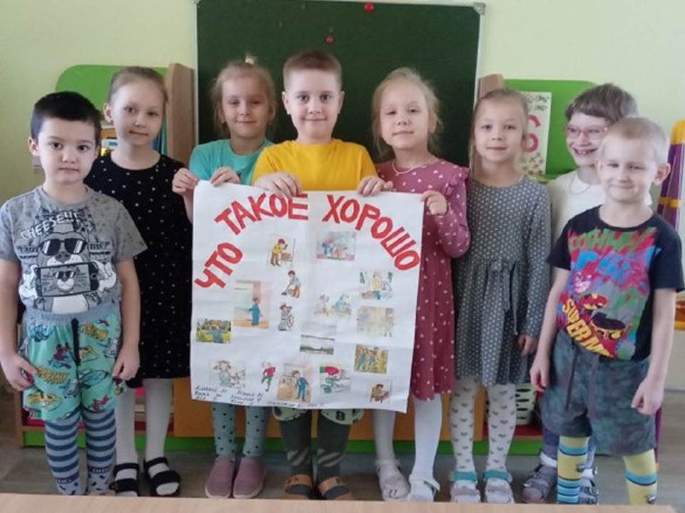 06.02.2025Дети с удовольствием разбирали различные ситуации, которые происходят с ними. Самостоятельно пытались делать выводы: хорошо они поступили или плохо в том или ином случае и почему? Ребята внимательно прослушали стихотворение В.В. Маяковского «Что такое хорошо и что такое плохо?». В группе были организованы выставки рисунков, совместно с педагогом Щерба И.А. ребята создали коллажи.