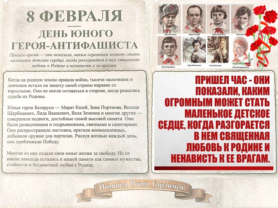 В преддверии Международного дня юного героя антифашиста в нашем детском саду прошло мероприятие мужества и патриотизма «День юного героя - антифашиста». Мы чтим память героически погибших, мальчишек и девчонок, которые сражались за свободу и мир.